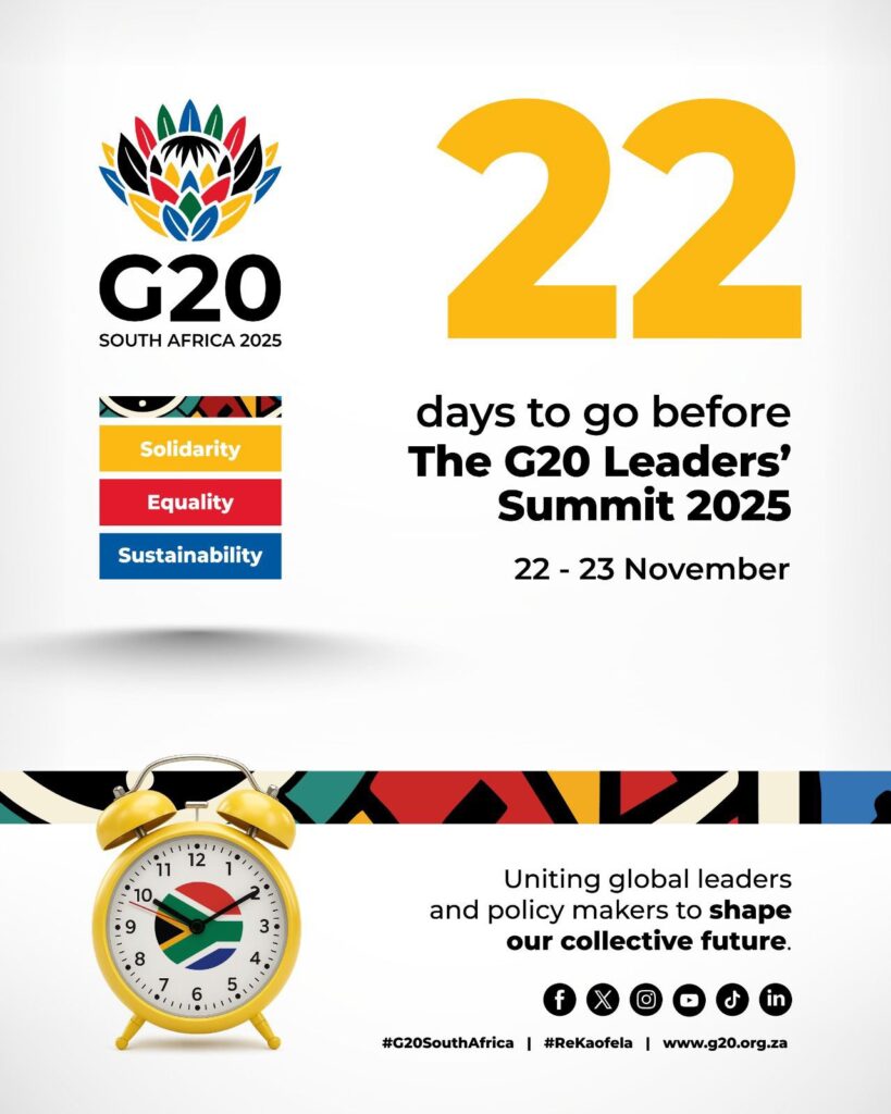 The summit takes place amid what the Department of International Relations and Cooperation (DIRCO) has described as “the erosion of multilateralism,” a growing threat to global stability and cooperation. South Africa’s presidency aims to restore collaborative momentum by reinforcing inclusive development and shared accountability among major economies.