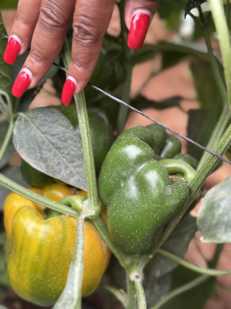 Zvaraya holds a BSc in Agronomy and is pursuing an MSc in Crop Protection & Post-Harvest Technology, a combination that underpins her deep expertise in crop productivity and post-harvest management. She is particularly renowned for her guidance on greenhouse cultivation, with a focus on high-value crops such as bell peppers and tomatoes. According to Zvaraya, “bell peppers are less demanding in terms of agronomic practices and have a fairly stable market, especially red and yellow varieties.” She notes that under greenhouse conditions, bell peppers can yield 4 kg per plant, while open-field cultivation averages 2 kg per plant, with colored peppers struggling outside controlled environments. Retail prices for red and yellow peppers typically start at $1.50 per kilogram, compared with green peppers at $0.40–$0.50 per kilogram, highlighting the profitability potential for strategic greenhouse production.